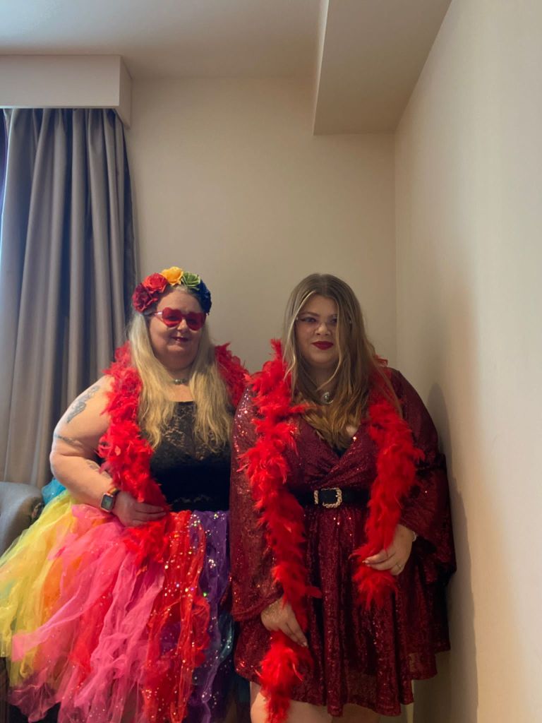 For Harry night one we went heavy with the BYOB (Bring your own Boas) that and we went red/rainbow with our outfits. Possibly my favourite outfits ever.